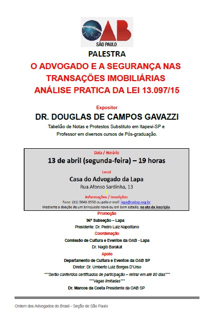 Processo 1002342-36.2015.8.26.0100 – Dúvida – Inscrição na Matrícula de Registro Torrens – Alexandre Coli Nogueira – “Dúvida – Registro de carta de sentença – Existência de dois fatos geradores distintos – Incidência de ITCMD e imposto de transmissão inter vivos – Dúvida procedente” Vistos. Trata-se de dúvida suscitada pela Oficial do 4º Registro de Imóveis da Capital, a requerimento de Alexandre Coli Nogueira, em face da negativa em se proceder ao registro da carta de sentença extraída dos autos de inventário e partilha dos bens deixados por Paulo Roberto Cabral Nogueira (nº 0641076-49.2000.8.26.0100), que tramitou perante o MMº Juízo da 7ª Vara da Família e Sucessões do Foro Central, referente aos imóveis matriculados sob nºs 521, 1.109, 131.599, 88.606, 88.607 e 88.608. Os óbices registrários referem-se aos imóveis matriculados sob nºs 88.606, 88.607 e 88.608, tendo em vista que foram partilhados na proporção de 1/3 para cada filho, sendo que estes instituíram usufruto em favor da viúva meeira, excedendo a sua meação, razão pela qual faz-se necessário o recolhimento do imposto de transmissão “inter vivos”. Sustenta a Registradora a incidência de dois tributos, quais sejam, o ITCMD, proveniente da transmissão da propriedade aos herdeiros filhos, e o imposto de transmissão “inter vivos”, calculado sobre 1/3 do valor da propriedade, oriundo da instituição do usufruto à viúva. Informa a Oficial que do esboço de partilha e do cálculo apresentado pelo contador na carta de sentença, não houve apuração do imposto “inter vivos” relativo à instituição do usufruto, bem como a juntada de guia que comprove o recolhimento do mencionado tributo ou a isenção concedida pela Fazenda Estadual. Juntou documentos às fls. 04/420. O suscitado apresentou impugnação (fls.424/428). Alega que, quando do falecimento de Paulo Roberto (04.11.2000), vigia a Lei nº 9.591/1966, a qual regulada todas as transmissões de bens imóveis, incluindo tanto as transmissões “inter vivos” quanto “causa mortis”. Salienta que o fato gerador da sucessão legítima é o falecimento, assim, em 04.11.2000 ocorreu a transmissão dos bens do espólio aos herdeiros, constituindo esta data o marco para a transmissão do usufruto ao cônjuge meeiro, nos termos dos artigos 1º e 2º da mencionada lei. Informa que o único imposto exigido pela lei é o ITCMD, e este foi regularmente pago, sendo que a cobrança de imposto sobre a parte atribuída a título de usufruto, caracteriza bitributação, vedada pelo ordenamento jurídico. O Ministério Público opinou pela procedência da dúvida (fls. 435/437). É o relatório. Passo a fundamentar e a decidir. Com razão a Registradora e a Douta Promotora de Justiça. Preliminarmente, cumpre destacar que os títulos judiciais não estão isentos de qualificação, positiva ou negativa, para ingresso no fólio real. O Egrégio Conselho Superior da Magistratura já decidiu que a qualificação negativa do título judicial não caracteriza desobediência ou descumprimento de decisão judicial (Apelação Cível n. 413-6/7). Conforme se verifica na presente hipótese, há a incidência de dois fatos geradores, a transmissão das propriedades aos herdeiros, gerando consequentemente a incidência de ITCMD, e a instituição de usufruto vitalício à viúva meeira, incidindo o imposto de transmissão “inter vivos” (ITCD). Ao contrário do que alega o requerente, o imposto de transmissão “inter vivos”, não se encontra inserido no pagamento do ITCMD, tendo em vista que são provenientes de fatos geradores diversos. De acordo com o princípio da “saisine”, com o evento morte transfere-se a propriedade dos bens aos herdeiros, incidindo consequentemente o ITCMD. O ITCD incide sobre a doação, conforme artigo 2º, parágrafo primeiro, do Decreto nº 34.982/2013, que se deu posteriormente, sob a forma de usufruto. De acordo com a guia de fl.297, verifica-se que houve somente o pagamento do ITCMD. Ademais, como bem observou a Douta Promotora de Justiça, a alegação de que a cobrança do imposto seria ilegal, caracterizando bitributação, deverá ser aventada nas vias ordinárias, com a presença docontraditório e ampla defesa, bem como produção de provas, o que não é possível em sede administrativa. Do contrário, estaria sendo discutida matéria de interesse da Fazenda Pública, sem que ela do feito fosse parte integrante. Só no meio próprio, no qual se estabelecesse a lide, e onde estivesse formada regular relação jurídico processual, com a indispensável participação da Fazenda Pública credora do tributo, tal questão poderia ser objeto de pronunciamento jurisdicional. Por fim, como é sabido ao Oficial de Registro cumpre fiscalizar o pagamento dos impostos devidos por força dos atos que lhe forem apresentados em razão do ofício, na forma do art. 289 da Lei nº 6.015/73, sob pena de responsabilização pessoal do Oficial Delegado, sendo que no presente caso se encontra o ITCMD e o imposto de transmissão “inter vivos”, cuja prova de recolhimento deve instruir o formal de partilha, salvo hipótese de isenção devidamente demonstrada, o que não se vislumbra. Ante o exposto, julgo PROCEDENTE a dúvida suscitada pela Oficial do 4º Registro de imóveis da Capital, a requerimento de Alexandre Coli Nogueira, e mantenho o óbice imposto. Não há custas, despesas processuais ou honorários advocatícios decorrentes deste procedimento. Oportunamente, arquivem-se os autos. P.R.I.C São Paulo, 27 de março de 2015. Tania Mara Ahualli Juíza de Direito – ADV: ALEXANDRE COLI NOGUEIRA (OAB 106560/SP)