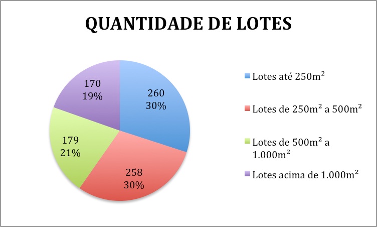 Lotes de 250m² a 500m² | 258 | 29,76 | 94.651,01 | 15,02 |