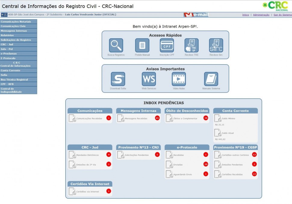 A partir da próxima segunda-feira (18.04) a Central de Informação do Registro Civil (CRC) terá novo layout visando assim facilitar as buscas na central de dados.