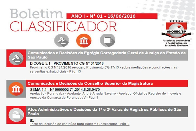 Também será possível o download e armazenamento diário das notícias enviadas através do Boletim Classificador, além do compêndio mensal e acesso via site da ANOREG/SP de todas as publicações.