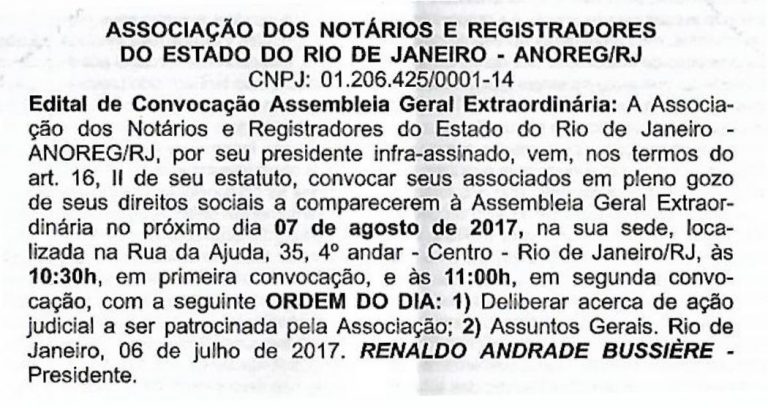 Anoreg-RJ: Edital de Convocação Assembleia Geral Extraordinária