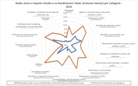 Os altos rendimentos individuais da elite dos profissionais (onde existe situação de relativa igualdade entre toda a categoria) deve dar causa a recolhimento de imposto de renda pelas alíquotas mais altas, devendo, em muitos casos, limitar-se ao teto máximo de 27,5% do rendimento.