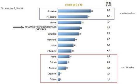 Confiança e credibilidade em bombeiros, professores, médicos e cartórios