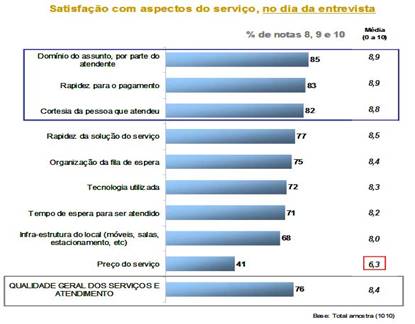Os aspectos do serviço mais bem avaliados concentram-se nas qualidades do atendente e na rapidez: