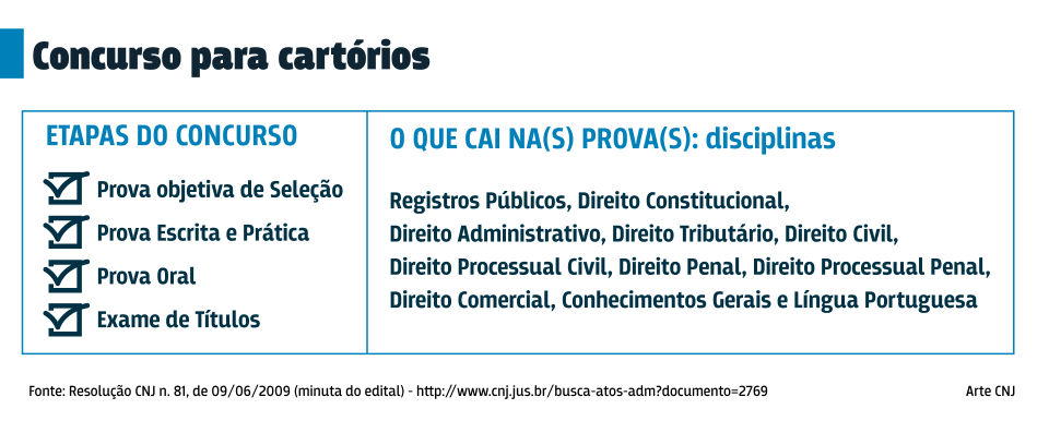 O outro aprova notários, oficiais de registro e tabeliães que já respondem por um cartório há pelo menos dois anos e desejam assumir uma outra serventia extrajudicial. Os procedimentos da seleção pública foram definidos na Lei 8.935, que regulamentou os serviços cartoriais no país em 1994.
