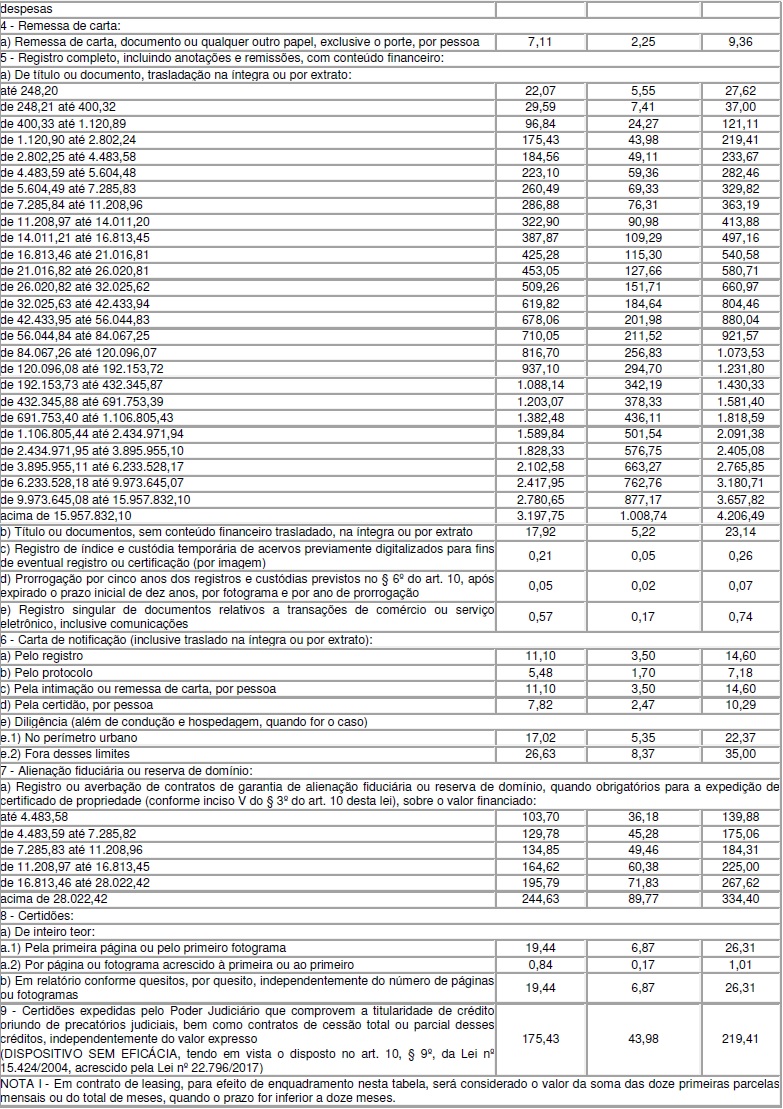 CONSIDERANDO a Lei estadual nº 15.424, de 30 de dezembro de 2004, que dispõe sobre a fixação, a contagem, a cobrança e o pagamento de emolumentos relativos aos atos praticados pelos serviços notariais e de registro, sobre o recolhimento da Taxa de Fiscalização Judiciária e sobre a compensação dos atos sujeitos à gratuidade estabelecida em lei federal e dá outras providências;