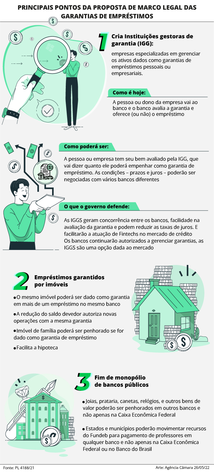 A Câmara dos Deputados aprovou nesta quarta-feira (1º) o projeto que cria o marco legal das garantias de empréstimos (PL 4188/21). A proposta seguirá para o Senado.