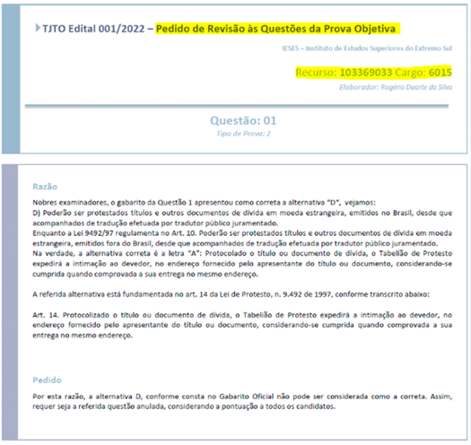Aponta que, com a publicação dos resultados das provas escrita e prática, que será feita no Diário de Justiça Eletrônico em conjunto com os espelhos utilizados para as correções, os candidatos poderão apresentar impugnações no prazo previsto no Edital do Concurso.