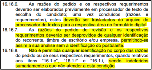 Quanto ao pedido de anulação das peças práticas e das questões que destoem da “objetividade prevista em certame, uma vez que demandam invenção de pressupostos fáticos” aptos a produzir a identificação dos candidatos, o Recorrente não logrou êxito em demonstrar, de forma concreta, a ocorrência de tal evento.