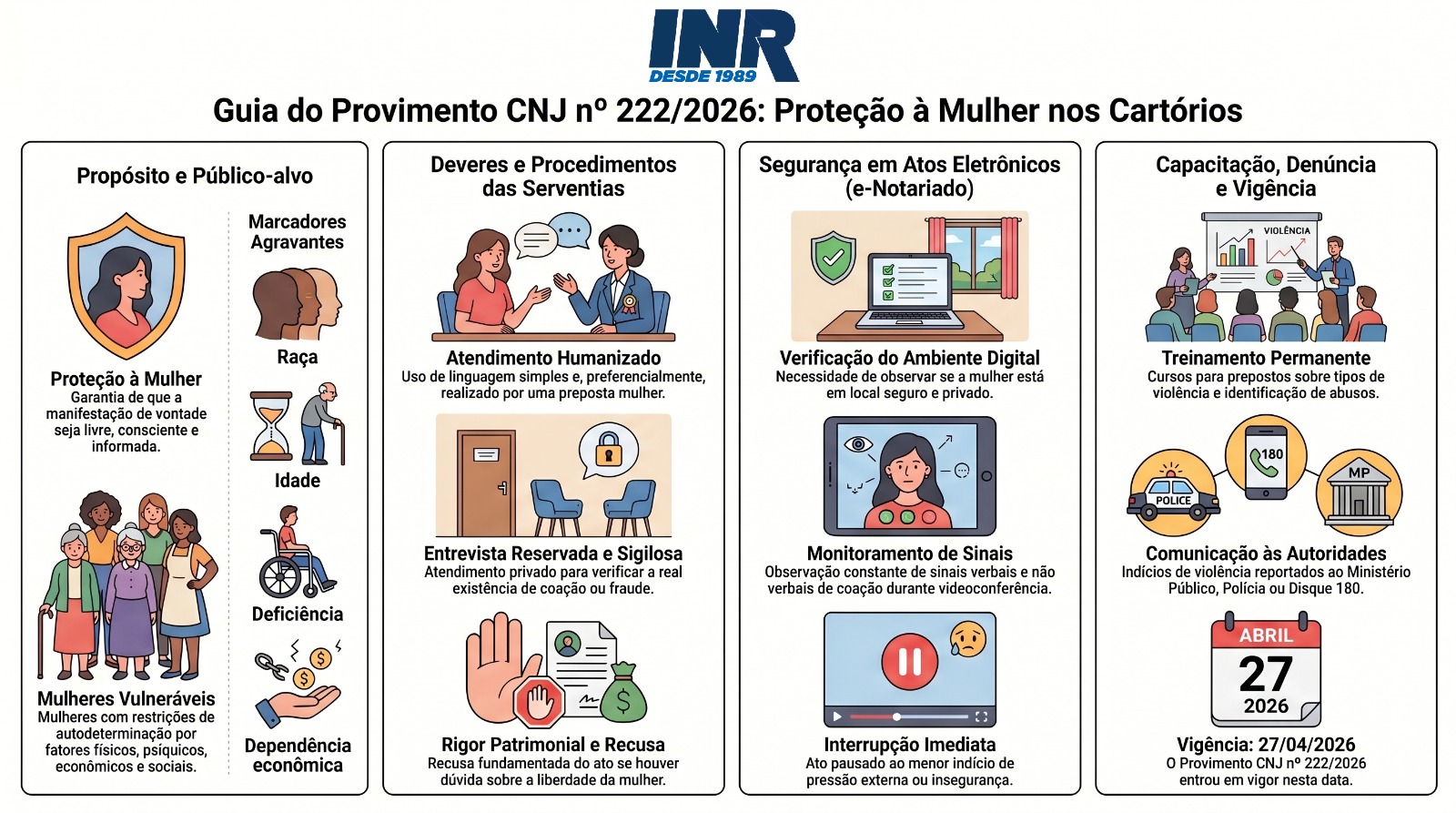VI – identificados indícios de coação, assimetria acentuada de informações, pressão psicológica ou vulnerabilidade da mulher, ainda que não exista medida protetiva de urgência ou cautelar formalizada, adotar as seguintes providências para a salvaguarda da higidez do ato: