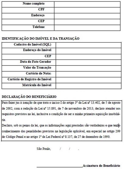 Parágrafo único. O beneficiário da isenção de que trata o inciso I do "caput" deste artigo deverá apresentar ao notário, ao oficial de Registro de Imóvel ou seus prepostos a Declaração para Isenção do ITBI–IV, conforme modelo anexo a este regulamento, devidamente preenchida e assinada.