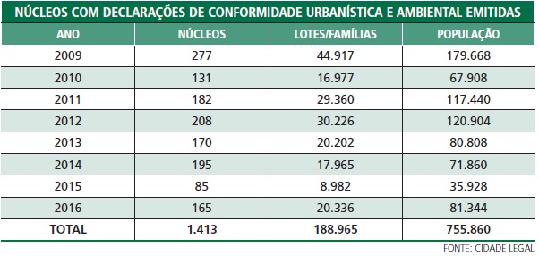 Núcleos Habitacionais – Cidade Legal. Nessa época nem havia legislação nacional sobre a regularização fundiária em áreas urbanas. Num primeiro momento, as ações estavam direcionadas somente para o registro em cartório, ou seja, dar um título ao morador do imóvel.